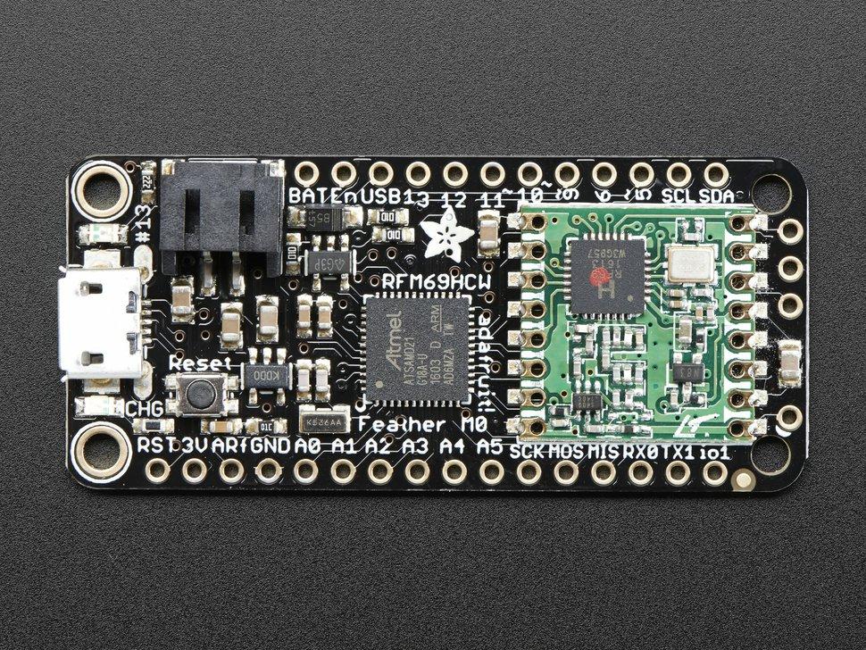 Adafruit Feather M0 RFM69 Packet Radio on innovatiivinen mikrokontrolleri, jossa on sisäänrakennettu 433 MHz:n RFM69 HCW -pakettiradiolähetin-vastaanotin. Siinä on tehokas 48 MHz:n ATSAMD21G18 ARM Cortex M0 -prosessori, joka tarjoaa 256 kt FLASH-muistia ja 32 kt RAM-muistia laajoja ohjelmointivaihtoehtoja varten. Levy yksinkertaistaa kannettavia projekteja sisäänrakennettujen USB ja akunlatausominaisuuksien ansiosta.